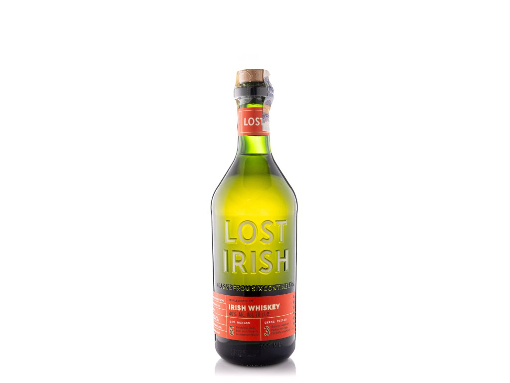 Lost Irish Whiskey je moderní irská whiskey, která symbolizuje cestovatelského ducha a spojuje tradiční irské řemeslo s inspirací ze šesti kontinentů. Je vyráběna z kombinace sladového a obilného destilátu, který zraje v různorodých sudech z celého světa – od amerického bourbonu, přes karibský rum, až po jihoafrická vína. Výsledkem je komplexní whiskey s jemnou vanilkovou sladkostí, kořenitostí a lehkými ovocnými a dubovými tóny. Lost Irish se odlišuje tím, že každý sud přispívá k vrstvení chutí a vytváří neobvyklý chuťový profil s globálním charakterem, přesto však zůstává věrná hladkému irskému stylu.
